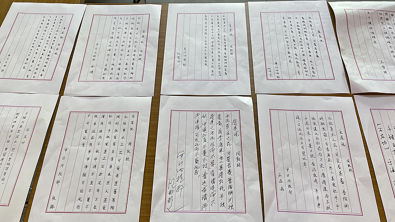 此次特色活動(dòng)得到大家的積極響應(yīng),活動(dòng)現(xiàn)場(chǎng)大家一字排開,摘抄有關(guān)廉潔自律的詩(shī)詞,所寫字體或大氣,或清秀,盡其所能地展現(xiàn)自身硬筆書法才能。活動(dòng)結(jié)束后,大家紛紛表示,這次清廉主題書法競(jìng)賽活動(dòng)為大家上了一堂生動(dòng)的廉潔文化課,書寫廉潔詩(shī)詞不僅能讓人感受到中國(guó)漢字文化的藝術(shù)魅力,又能對(duì)人的思想和行為進(jìn)行警醒和鞭策,時(shí)刻提醒自己要守住底線。