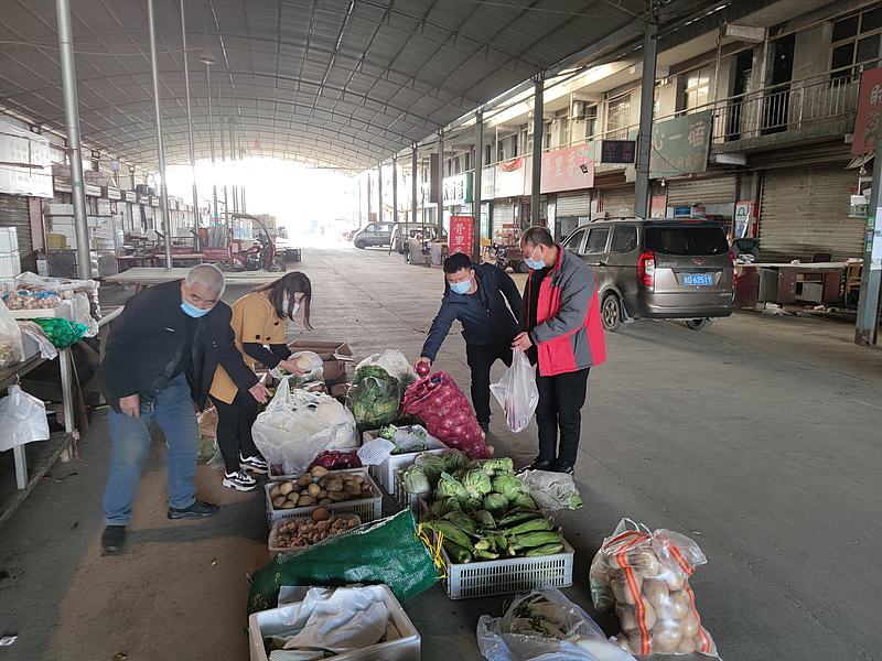 在系統詳細摸排各項目物資缺口和采購困難等問題后,市政工程項目管理部積極對接新城轄區內農貿市場、超市等采購站點,深入了解米面油、蔬菜、飲用水及其他生活必需品的供應情況,并結合實際制定系統的采購計劃。按照少流動、就近買的原則,由一名市政工程項目管理部員工帶領1-2名項目采購人員快速完成采購工作。