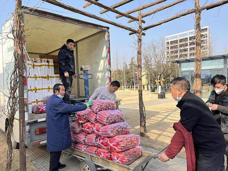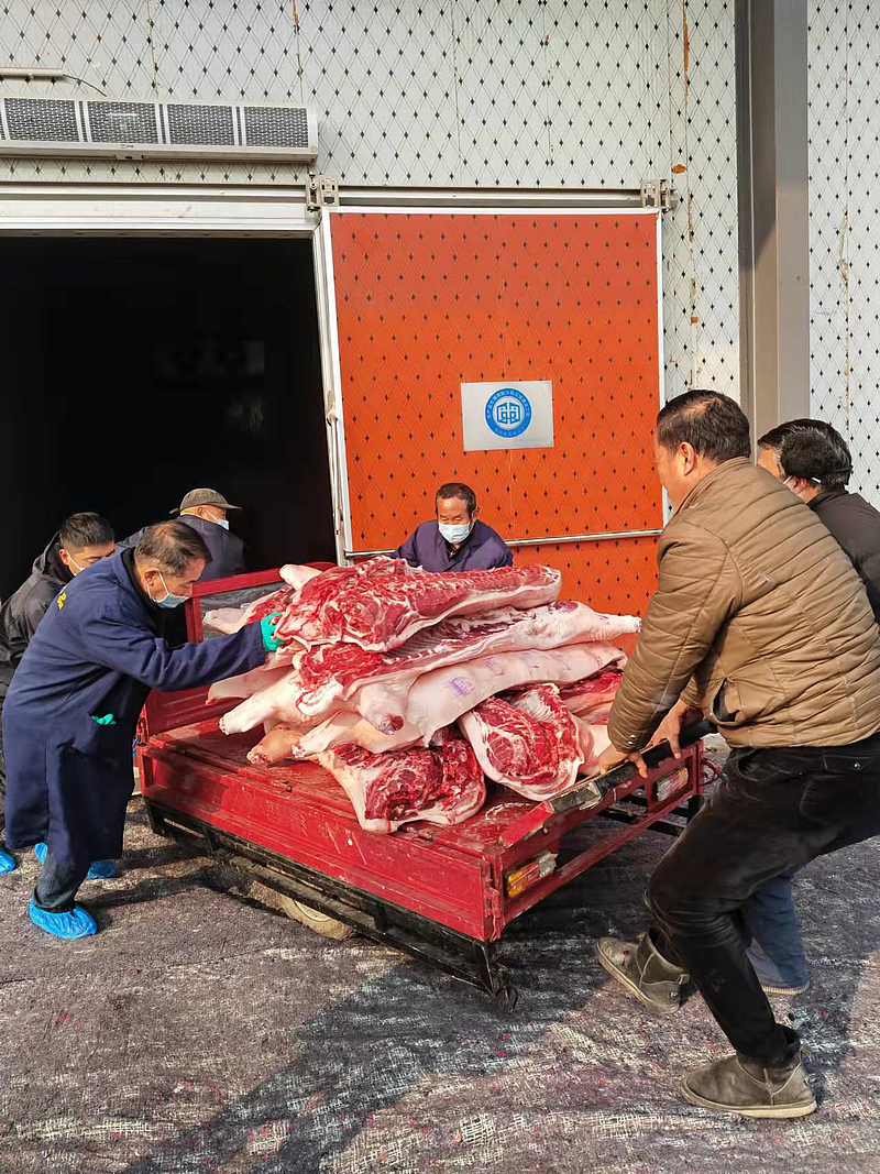 1月17日,第一批5000斤大肉運送至康東村冷庫儲藏