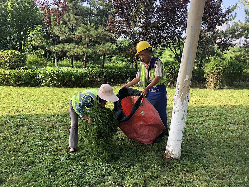 衛生保潔。認真做好34條道路綠化林帶、中隔帶以及環形公園一期、二期、五期等衛生保潔工作,每日進行公園、綠地道路清掃、座椅坐凳擦洗、垃圾箱清理以及石塊、塑料等清運工作,既保持了綠地、公園的優美環境,又促進了苗木草地的健康生長。