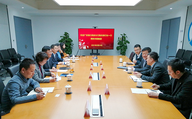 2月24日下午,廣發銀行西安分行副行長陳洪濤一行到訪灃西集團座談交流。灃西集團黨委書記、董事長楊建柱,總經理姜勤發,總經理助理王莉參加。