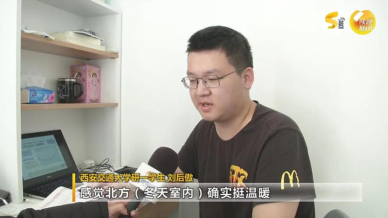 這兩天西安的氣溫只有幾攝氏度,在西咸新區(qū)灃西新城西安交通大學(xué)西部創(chuàng)新港校區(qū)的宿舍,來自南方的學(xué)生劉后傲對自己在北方的第一個冬天,留下了“溫暖”的印象。